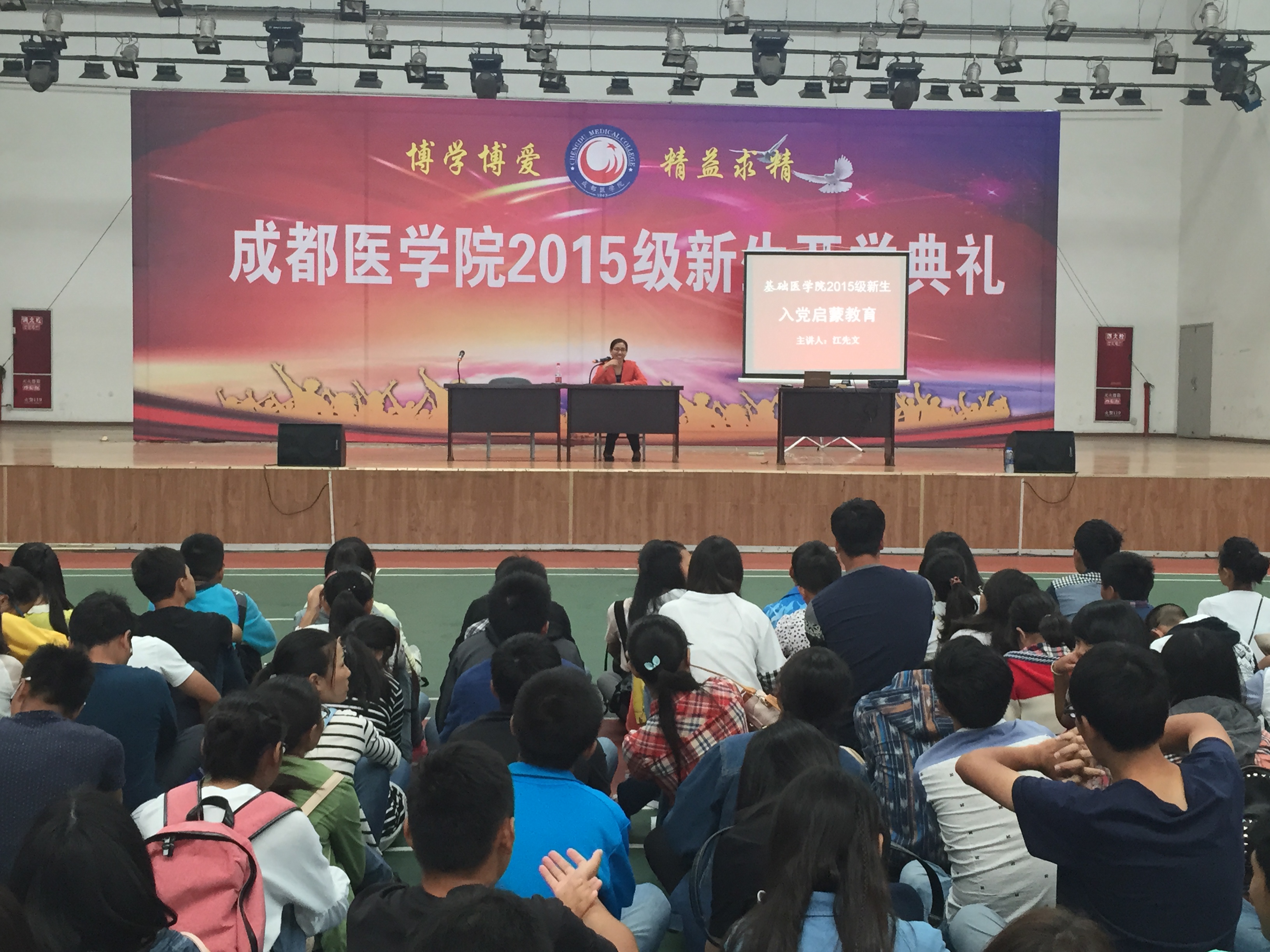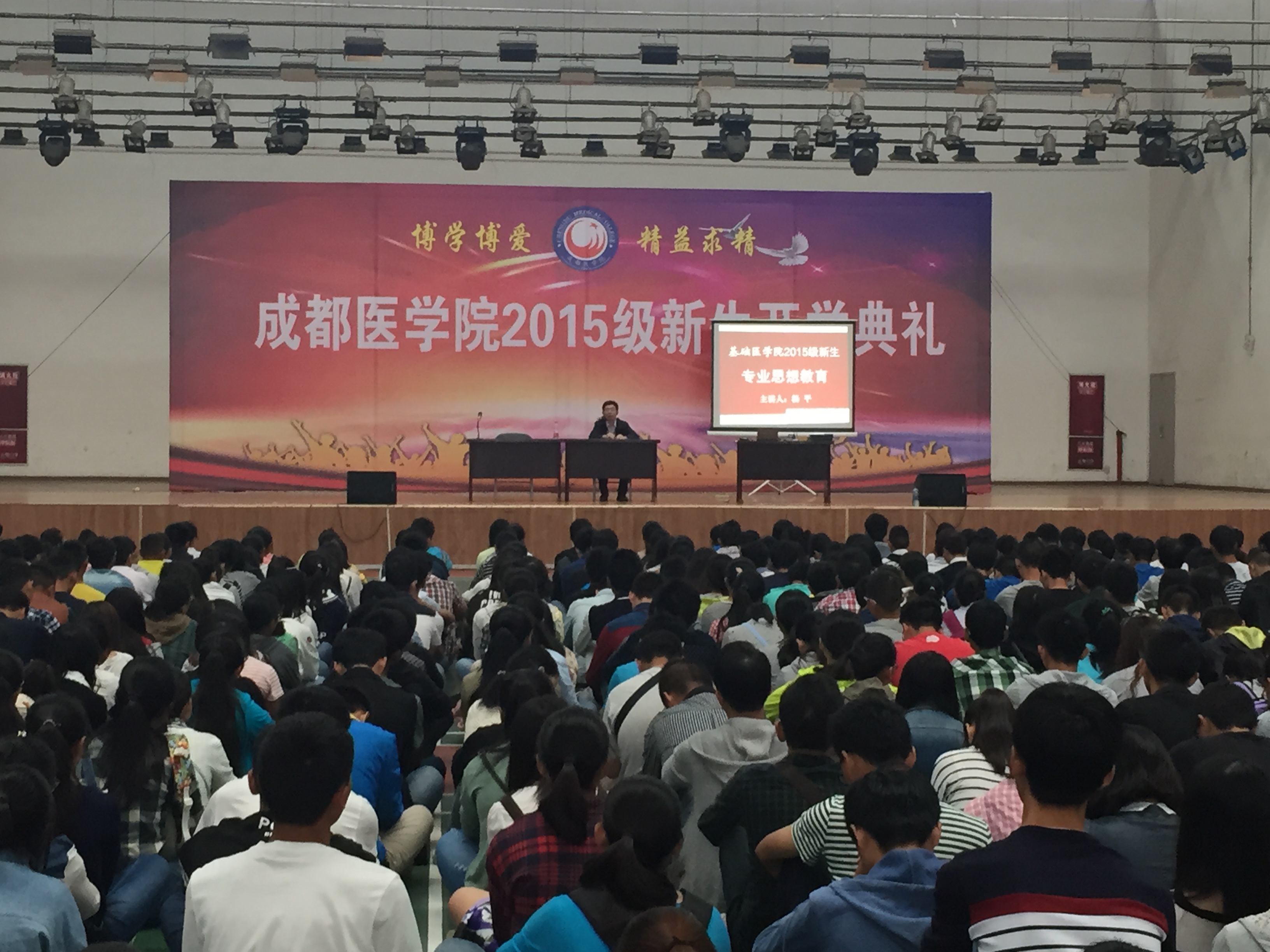 9月18日上午8:30,28365-365打不开2015级558名新生精神饱满集合在蜂巢,参加学院开展的入学教育。