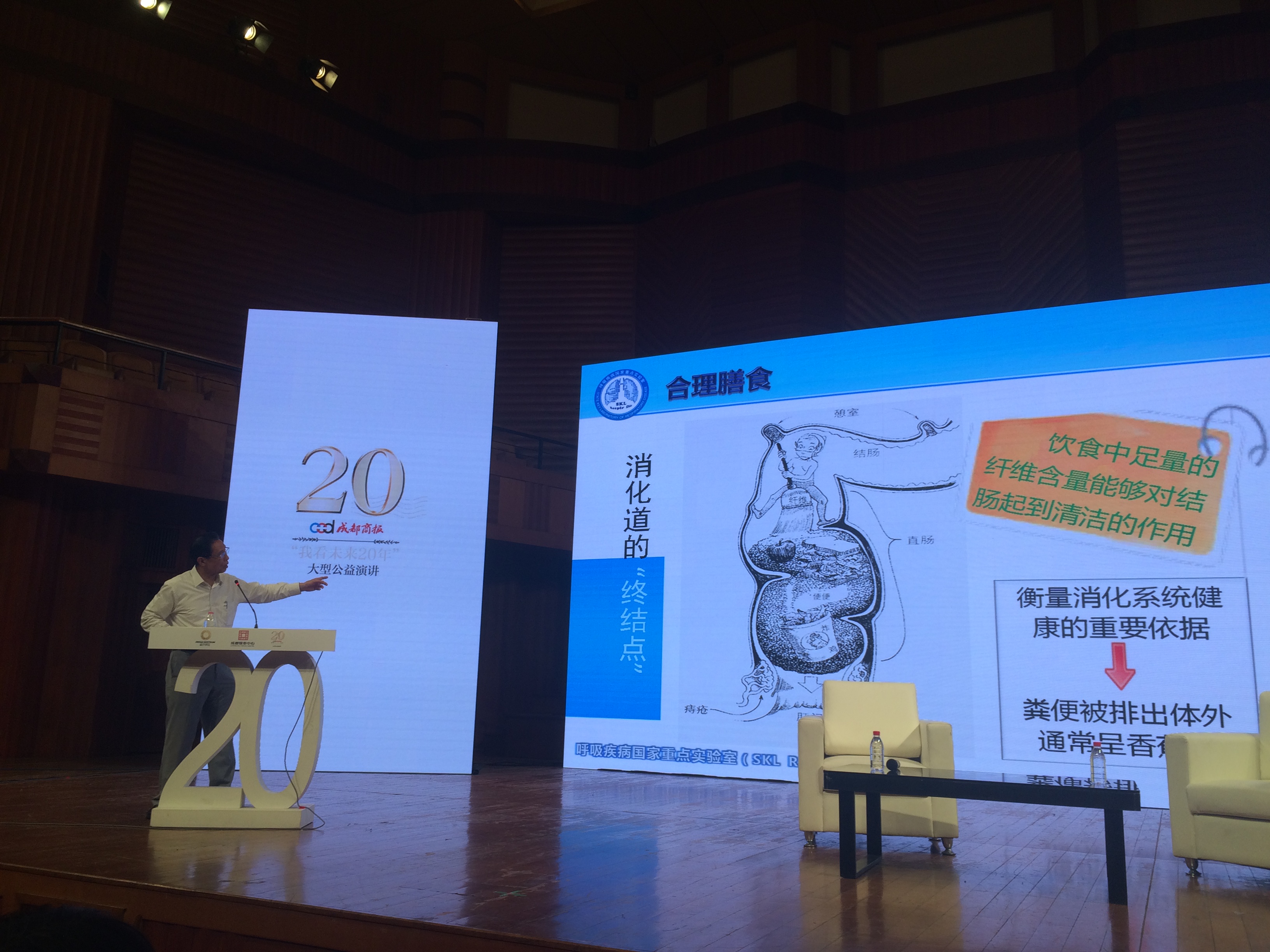 钟南山院士结合自己的医学背景,生活经验跟成都市民们上了一堂生动的健康课。钟院士矍铄的精神,健硕的身材为这个话题作了更精彩的无声发言。到了提问环节,观众们非常积极,同学们也抢到一个提问机会,向院士讨教临床见习、实习阶段的学习经验。钟院士认为在临床学习阶段要处理好学习和找工作的关系,建议同学们要把精力放在学习上;在医学生时期的临床动手机会不多,同学们不要放过自己经手的每一个病人,认真观察,将对病人的看法,对病的认识积累下来,才能学会举一反三。钟院士坦言医学需要学习和记忆的成份比较多,学医辛苦,当医生也很辛苦,但是当你治愈病人的喜悦与成就,是任何其他东西都换不来的。