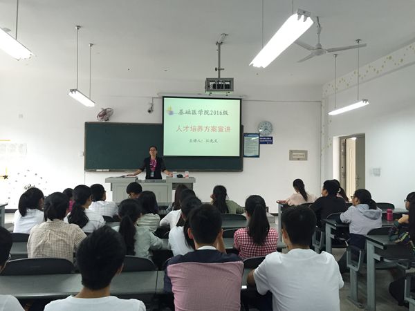 宣讲培养方案后,江先文开展了2016级新生入党启蒙教育。希望大学生学习理解中国共产党的性质和宗旨,党和国家对大学生的培养要求,明确青年大学生坚定理想信念、提升政治素养的重要性。鼓励号召全体同学自觉树立和践行社会主义核心价值观,在勤学、修德、明辨、笃实上下功夫,不断夯实专业基础知识,努力提高科学人文素养,成长为德、智、体、美、劳全面发展的合格医学生。