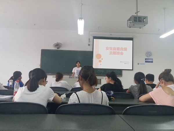 班会前期通过一些女性案例展现出女生自尊自爱的重要性和必要性,让同学们正确认识到作为女生所面临的一些危害和不利影响,总结出女生“自尊、自爱、自重、自护”的一些规范与方法,特别强调要树立正确的爱情观。告诫同学们正确恋爱,在恋爱中学会自重自爱,不做让自己后悔的事;强调树立正确的金钱观,不为一味地赚快钱而使自己陷入困境。班会呈现的诸多案例如“大学生求复合被拒:刺伤女友,放火自杀未遂被判3年”、“应聘模特被骗:女大学生遭假摄影师威胁强奸”、“女大学生网恋被骗十余万元、期间从未与对方见面”等让同学们陷入深深的思考,关于“女生如何做到自尊、自爱、自重、自护”,大家积极展开讨论。