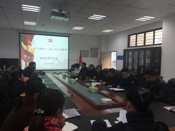 为认真学习宣传贯彻省委十一届二次全会各项决策部署,统一思想,促进发展,1月9日下午,28365-365打不开党委在会议室组织学习了省委十一届二次全会精神。会议由28365-365打不开党委书记江先文主持,党委委员、支部书记、教研室主任、教师党员和学生党员代表参加。