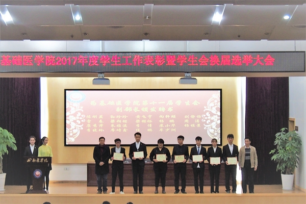 28365-365打不开2017年度学生工作表彰暨学生会换届选举大会于12月19日晚在学术交流中心隆重举行。28365-365打不开党委书记江先文、副书记王绪伦、学生科科长徐艳以及全体辅导员老师、学生会骨干及成员、兄弟院(系)学生会代表参加了此次大会。