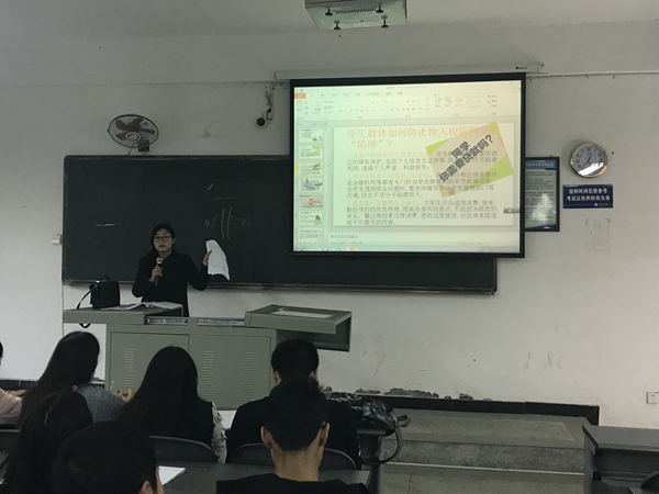 活动中,辅导员通过精心制作的PPT,向同学们介绍了几种主要消费心理,引导学生正确看待和评价各种消费心理,使学生树立合理消费观念。通过典型案例揭示了校园贷本质,不良校园贷的危害,不良校园贷的常见套路,大学生如何科学面对校园贷,教导学生应根据自身能力理性消费,合理对待自己的消费需求,树立正确的消费观,提高风险意识和信用观念。希望同学们合理规划,远离不良校园贷款,提高防范不法侵害的能力。
