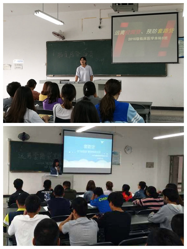 各班级组织学生学习了“校园贷”、“套路贷”的实质、特点、常用手段、社会影响、不良危害等方面的内容。观看了相关视频,并以真实的案例进行了介绍,给同学们留下了深刻的印象。相信在正视了无数被害人辍学、自杀、卖房抵债等残酷事实后,同学们能够切实体会到不良借贷的危害,提高警惕,远离不良借贷。