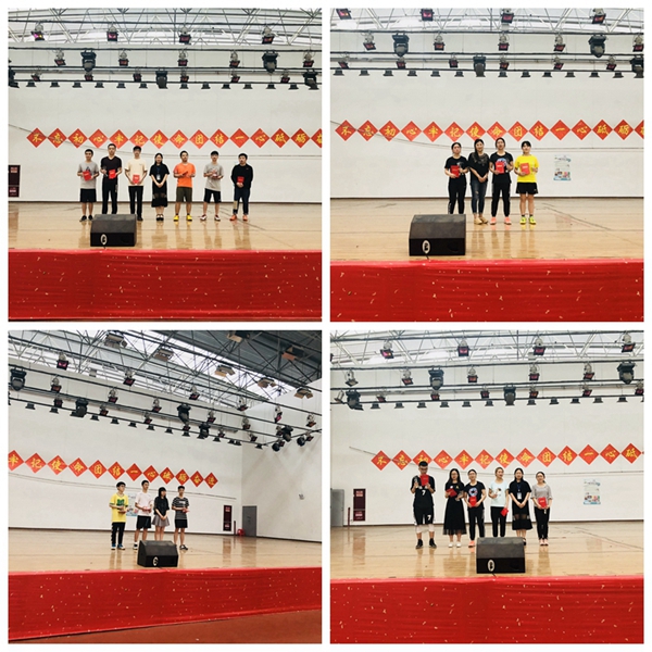 随后,主持人宣布了本次比赛的获奖名单,男子单打第一名临床医学院田振宏,第二名公共卫生学院李仁杰,第三名临床医学院赵吉川;女子单打第一名临床医学院卢姝贝,第二名临床医学院谭涵尤,第三名公共卫生学院袁文丽;男子双打第一名人文信息管理学院范圣坤、公共卫生学院蒋寅初,第二名临床医学院陈泊文、张崎,第三名临床医学院晏文、陈宗裕;女子双打第一名临床医学院卢姝贝,心理学院兰欣梅,第二名临床医学院郭敏慧、黄兴宇,第三名临床医学院李艳、胡晓艳;混合双打第一名公共卫生学院袁文丽、李仁杰,第二名公共卫生学院徐银芬、蒋寅初,第三名临床医学院谭涵尤、陈宗裕。