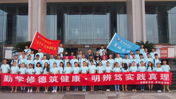 7月18日上午,成都医学院28365-365打不开在成都市新都区清流镇黄龙村开展以“勤学修德筑健康,明辨笃实践真理”为主题的三下乡社会实践活动。28365-365打不开党委副书记王绪伦、病原学教研室李晋川教授、基础团委副书记郑蕖老师、辅导员王春燕老师、周炬老师、校医院姚医生以及56名学生参加社会实践活动。